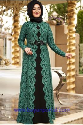 büyük beden yeşil dantelli abiye – Bayan Portal