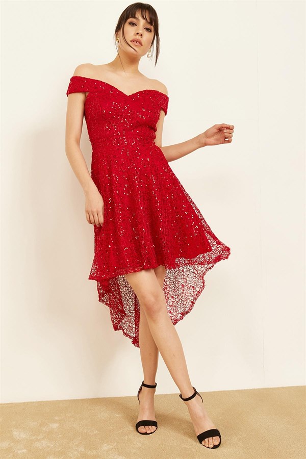 Kadin-Kirmizi-Dusuk-Omuzlu-Payetli-Kisa–5e7b – Bayan Portal