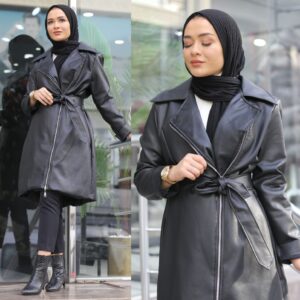 Tesettür Giyimde Yeni Trend Deri Kombinleri2